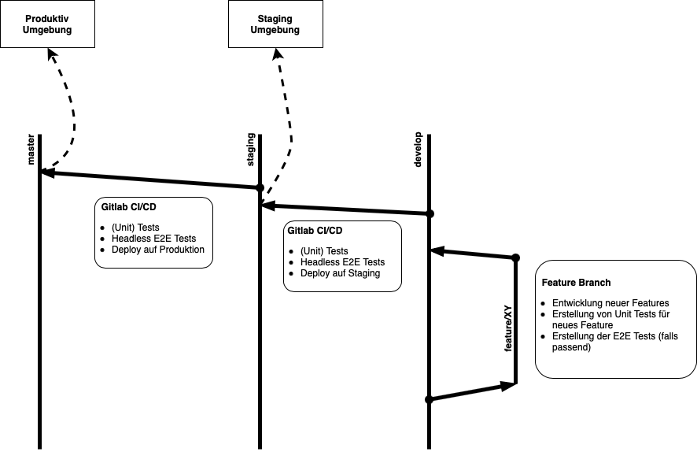 So sieht (etwas vereinfacht) unser Development/Staging Workflow im Detail aus: