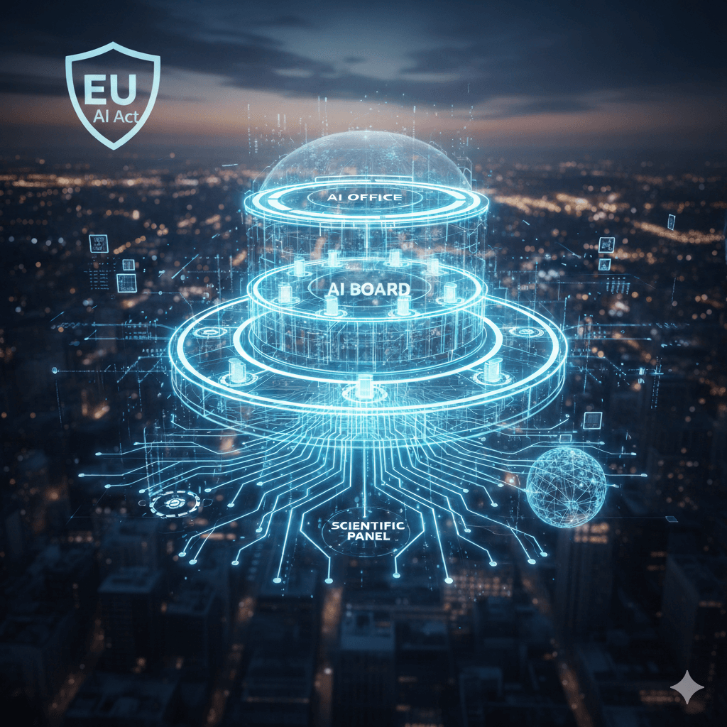 Die Governance-Bestimmungen der Verordnung in Kapitel VII traten am 2. August 2025 formell in Kraft. Dies operationalisierte die dreigliedrige Aufsichtsstruktur, bestehend aus dem Europäischen AI Office, dem AI Board und einem wissenschaftlichen Gremium unabhängiger Sachverständiger.