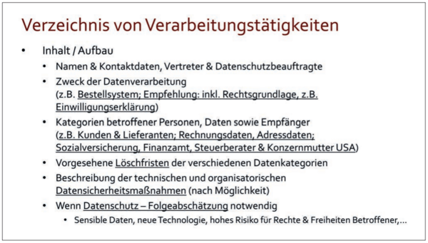 Erstellen Sie ein Verzeichnis der Verarbeitungstätigkeiten