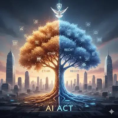 Die rasche Entwicklung und Implementierung Künstlicher Intelligenz (KI) aka Artificial Intelligence (AI) hat die Gesellschaft an einen normativen Scheideweg geführt. Grundlegend operieren Ethik und Recht in unterschiedlichen, wenn auch verbundenen, Sphären. Während die Ethik einen Leitfaden für das liefert, was eine Gesellschaft als „wünschenswert“ oder „richtig“ erachtet, definiert das Recht, was verbindlich und einklagbar ist, gestützt durch Sanktionen. Die jüngste Welle technologischer Innovationen, insbesondere im Bereich der generativen AI, hat die Dringlichkeit einer Konvergenz dieser Sphären dramatisch unterstrichen. Dabei haben nachgewiesene Risiken den Bedarf an strengen Regulierungen und ethischen Praktiken offenkundig gemacht.
