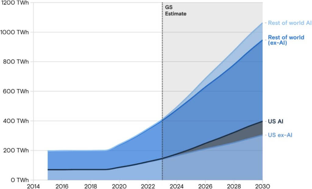 Abbildung 1: (Quelle: Masanet et al. (2020), Cisco, IEA, Goldman Sachs Research)