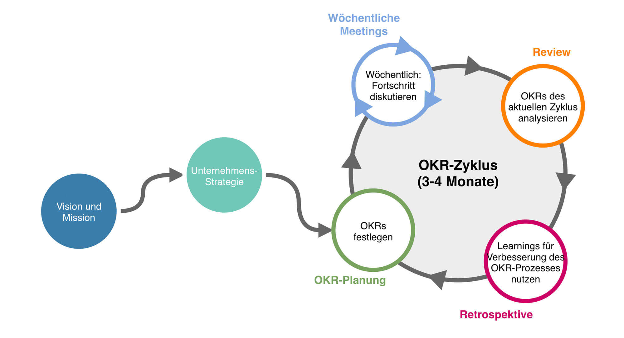 Hier ist eine grafische Darstellung eines OKR-Zyklus: