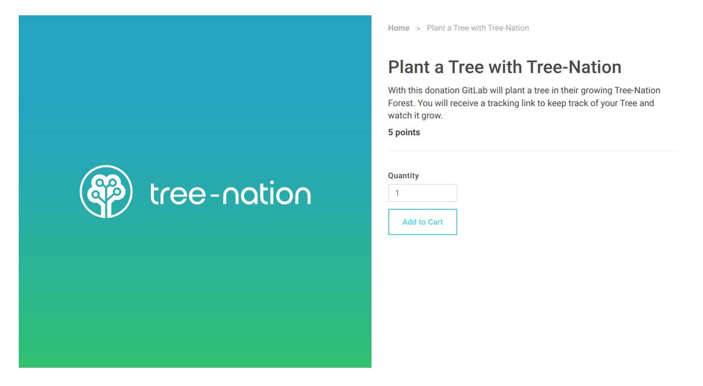 Abbildung 3: Kaufoption der Bäume mit Contributor Points (Quelle: https://rewards.gitlab.com/shop/37706-tree-nation-donation)