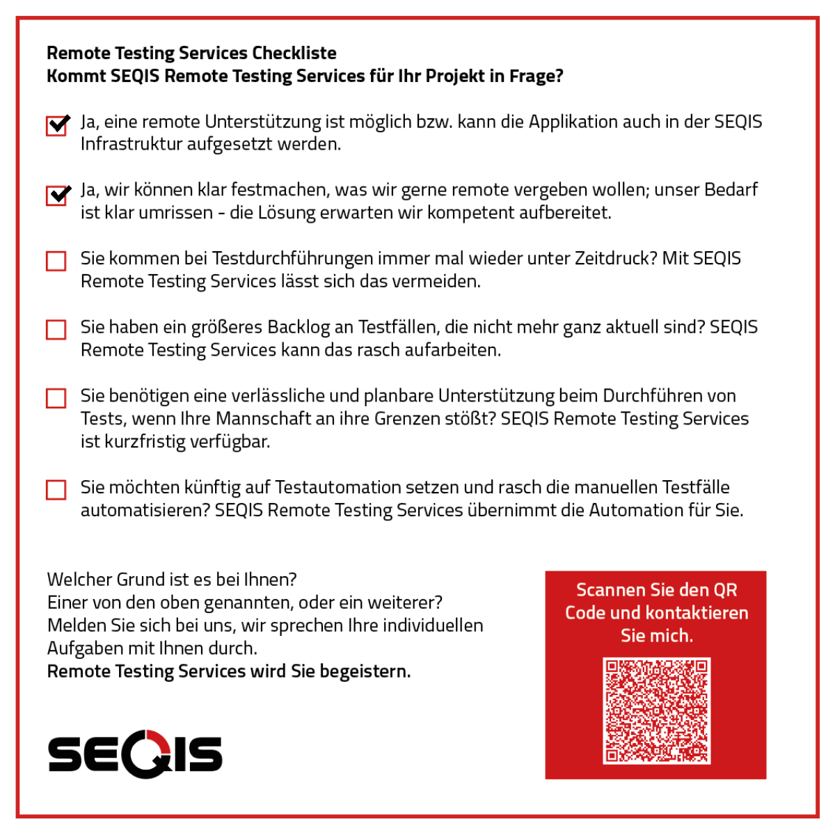 Kommt SEQIS Remote Testing Services für Ihr Projekt in Frage? - Checkliste