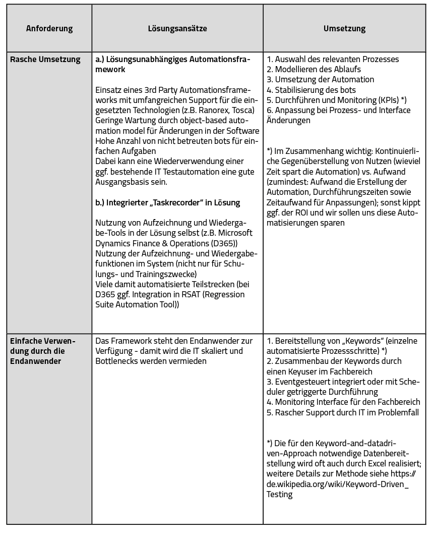 - Detailanalyse, was konkret - Schritt für Schritt - automatisiert werden soll (Fragestellung: WIE ist es zu tun? - eine übliche Domäne der IT Abteilung)