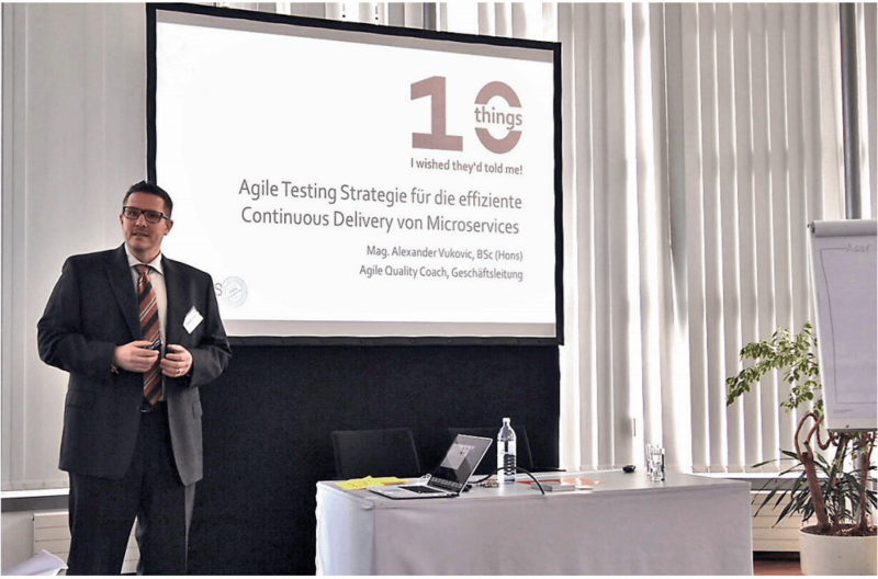 Der erste Expertentreff 2017 beschäftigte sich mit dem Thema „Agile Testing Strategie für die effiziente Continuous Delivery von Microservices“. Im Mittelpunkt des Vortrages stand eine beispielhafte Teststrategie, um die im Rahmen der Entwicklung von Microservices kontextspezifischen Herausforderungen gekonnt adressieren zu können.