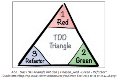 TDD ist eine Methode in der Softwareentwicklung mit dem Ziel, einen qualitätsgesicherten Code zu schreiben. Der Entwickler erstellt die Tests selbst bevor er die Komponenten programmiert. Diese Methode besteht aus den drei Phasen „Red“ - „Green“ - „Refactor“.