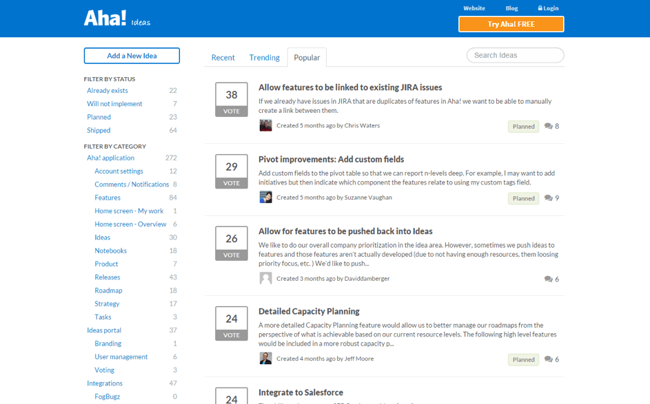 Aha! Ideenportal zur Kanalisierung der Kundenwünsche