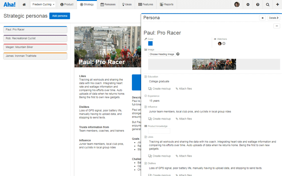 Ebenso erfasst Aha! Personas, also künstliche erschaffene Personen, die eine Personengruppe repräsentieren.