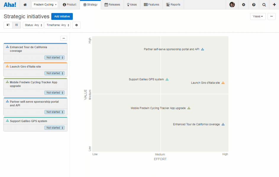 Aha! ist ein perfektes System für agile Produktmanagementteams. Es erleichtert die Findung der Produktstrategie, die Releaseplanung und Priorisierung, als auch die Beschreibung der umzusetzenden Anforderungen.