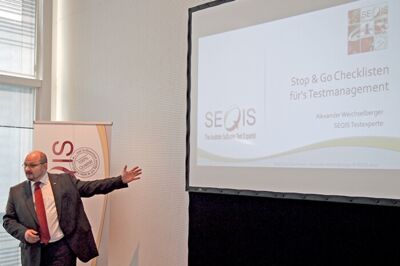 Herr Mag. Weichselberger, Testexperte und Mitglied der SEQIS Geschäftsleitung, hat seine Empfehlungen zum Schwerpunktthema „Stop & Go Checklisten für's Testmanagement“ praxisnahe und komprimiert vorgestellt.