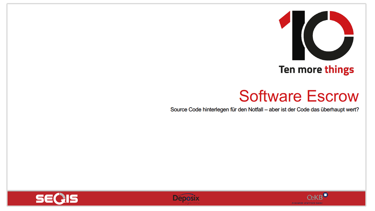 Viele Unternehmen entscheiden sich bei Anschaffung einer Software für Software Escrow, also einer Source Code Hinterlegung, die sicherstellt, dass im Notfall (z. B. bei Insolvenz des Softwareherstellers) der Kunde Zugriff auf den Source Code hat und ggf. selbst die Software weiterentwickeln kann.