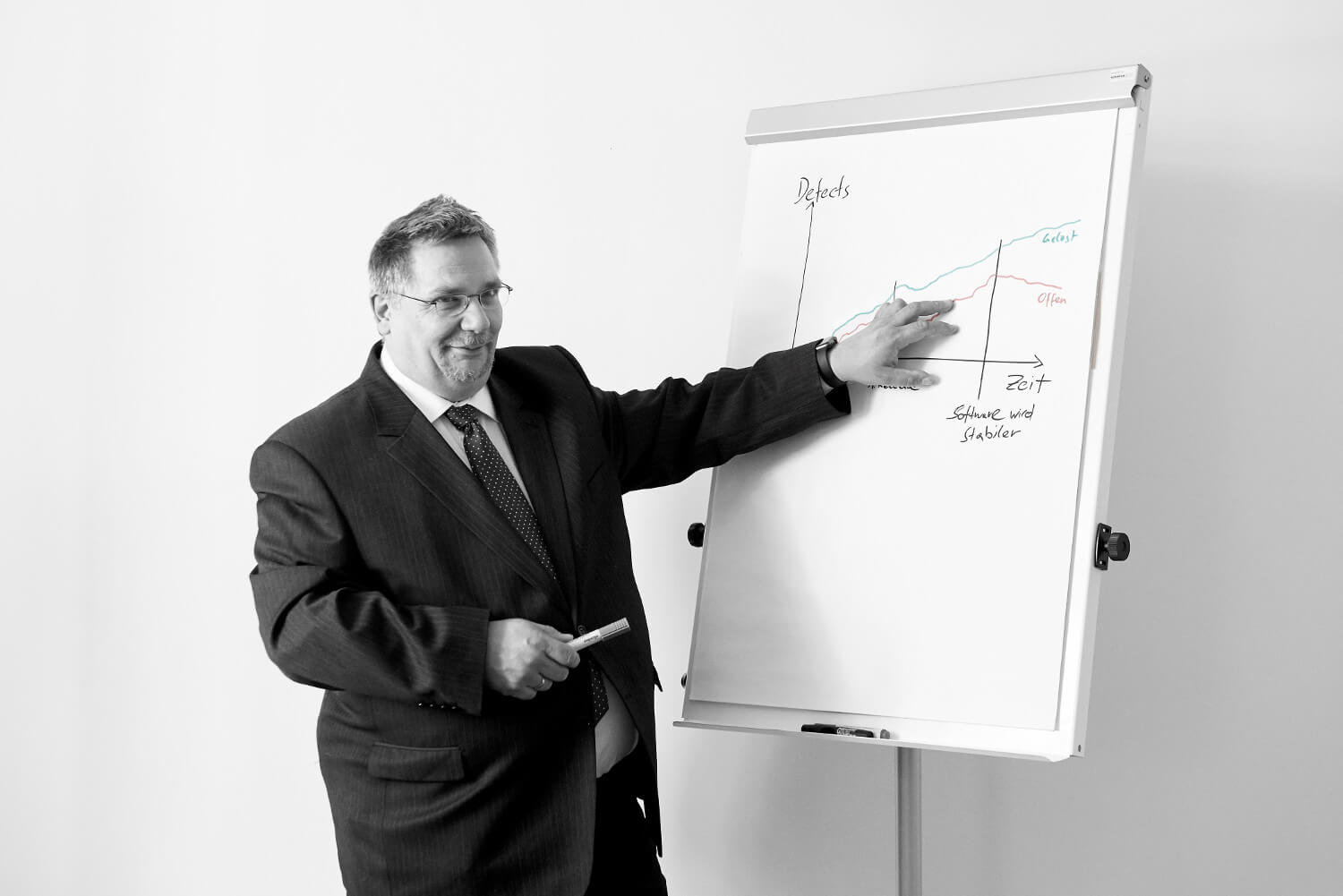 „Wenn ich heute im Projekt keine spezielle Neuerung erfinden muss, kann ich vom Anfang an konkret werden und Bedürfnisse nach klassischer Methode analysieren, designen, entwickeln, testen und deployen. Durch das Bündeln von Aufgaben läßt sich eine hohe economy of scale erreichen. Richtig gemacht ist klassisches Projektmanagement auch immer ein guter Weg – insbesondere dann, wenn das Unternehmen mit agilen Methoden noch am Anfang steht.“